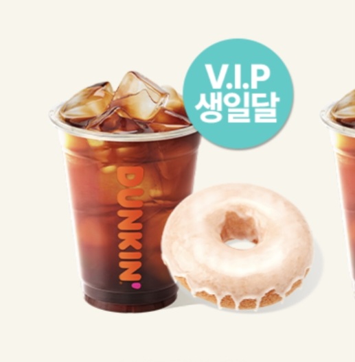 던킨에서는 브이아이피 혜택으로 아메리카노 s 사이즈와 페이머스 글레이즈드를 무료로 증정합니다.